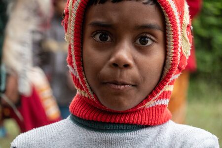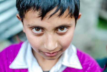 Biratnagar, Nepal - December 17, 2019: A close up portrait of a face of a boy.