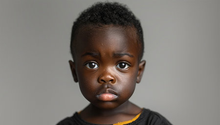 Portrait of a boy looking at the camera with a sad expression