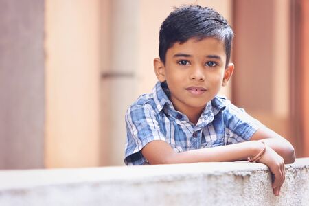 Portrait of Indian Little boy Posing to Camera with Cheerful Expression