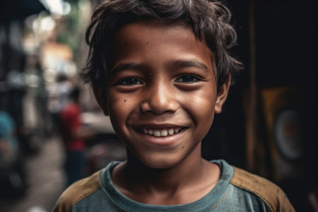 Bright eyes and a warm smile define this young boy, showcasing innocence and happiness. The simplicity of the setting enhances his joyful demeanor, reflecting a vibrant childhood in India.