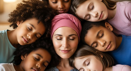 Children with their deaf mother sharing a sign language message of love, a warm and inclusive Mother's Day celebration.