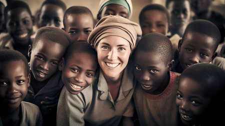 Global health aid and initiative. Educational program empowering diverse communities worldwide with knowledge about healthy living and disease prevention. Kids in Africa.