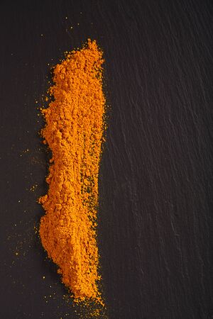 Turmeric powder on black background.