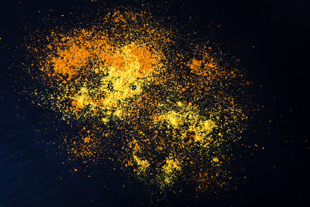 handful of bright spices on a dark background