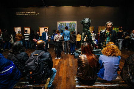 Paris, France - April 7, 2019: tourists admiring the sculptures in the Musee dOrsay.