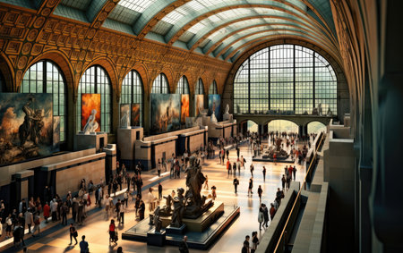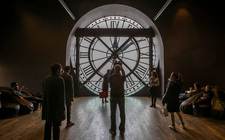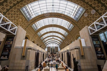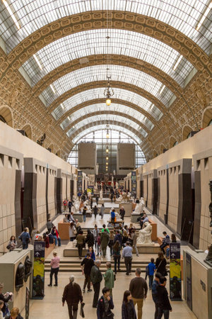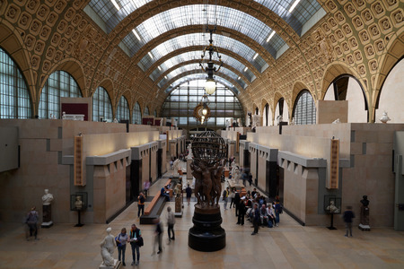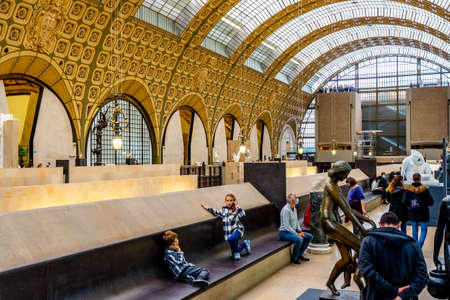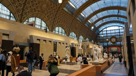 Paris, France - October 19, 2016: interior of the Musee dOrsay with unidentified people. It houses in the former Gare d'Orsay, a Beaux-Arts railway station. It is one of the largest museums in Europe