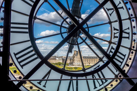Extremely large, clock visible from the outside of the Musee d'Orsay Museum in Paris, France