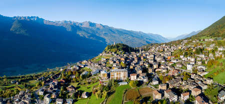 Teglio - Valtellina (IT) - Aerial view of the village towards the west