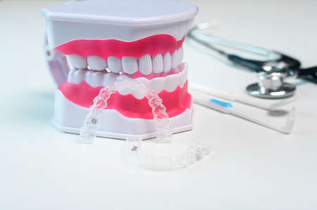 Invisalign braces and tools for dental care, dental healthcare and Orthodontic concept.