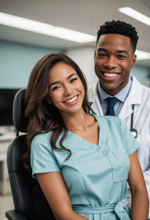 Friendly Interaction Between Dentist and Assistant in a Modern Dental Office