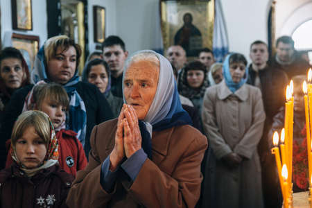 VOYUTYN, Volyn / UKRAINE - October 14 2009: Ukrainian parishioner of the Orthodox Church during the religious celebration Pokrov