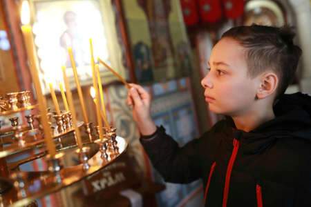 Child with candle in Holy Cross Church in Livadia, Crimea