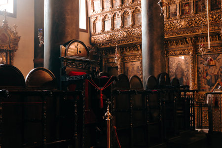 Fruska Gora / Serbia - March 24, 2019: Iconostasis in the Mala Remeta, Serbian Orthodox monastery on the Fruska Gora mountain in the province of Vojvodina in northern Serbia, built in 13th century