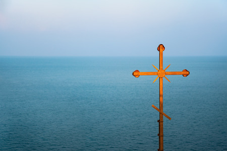 Huge Orthodox cross in the church interior. Orthodox tradition and faith. Equipment for praying. Pray for people life. Pray to god