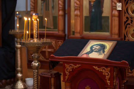candle stand and lamp in the Orthodox Church. religious Christian traditions.