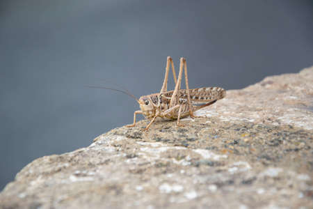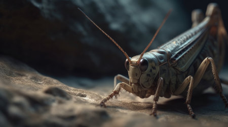 A stunning close-up shot of a cricket on a rocky surface, emphasizing its detailed features and vibrant colors, perfect for nature and macro photography enthusiasts.