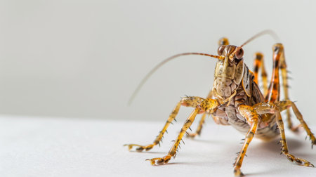 This striking close-up image captures the intricate details of a grasshopper, highlighting its unique features, colors, and textures in a stunning natural setting.