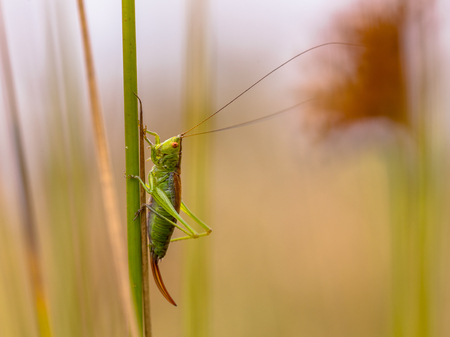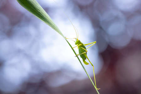 Green bush cricket with a filamentous antennae