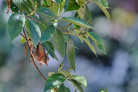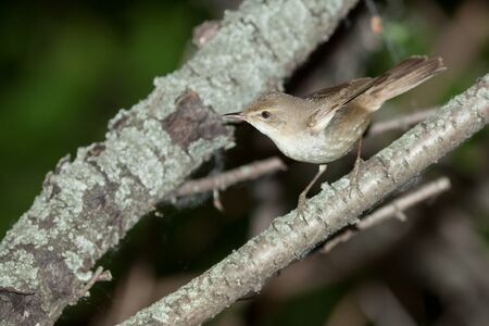 Blyth's Reed Warbler (Acrocephalus dumetorum).Wild bird in a natural habitat. Denisovo. Ryazan region, Pronsky area. Russia.