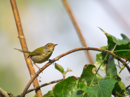 Image of bird (Common Tailorbird) on the branch on natural background.