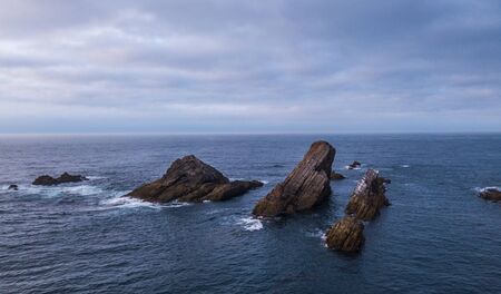 A picturesque seascape of Atlantic ocean coast near Cabo de Penas in Asturias, Spain