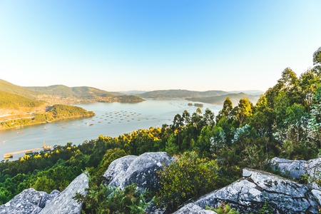 View of the Cies Islands National Park from the viewpoint of the Queen's Chair. Vigo. Galicia. Spain.