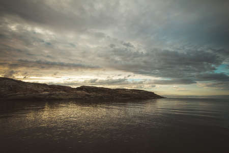Beautiful seascape sea horizon and norwegian stone coastline, Scandinavia Europe.
