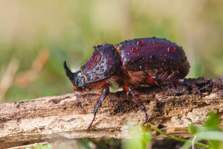 Close up European Rhinoceros Beetle Oryctes nasicornis in Natural Habitat