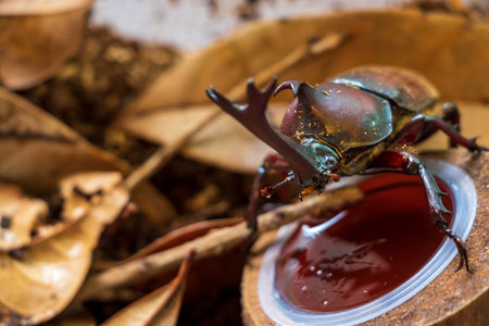 Rhinoceros beetle or Rhino beetle or Hercules beetle or Unicorn beetle or Horn beetle, close up, outdoors, island Bali Indonesia