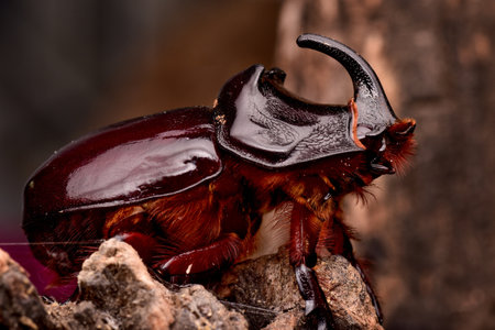 Macrophotography of a Rhinoceros beetle (Oryctes nasicornis).
