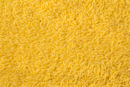 Raw Organic Risoni Pasta in a Bowl, top view. Flat lay, overhead, from above.