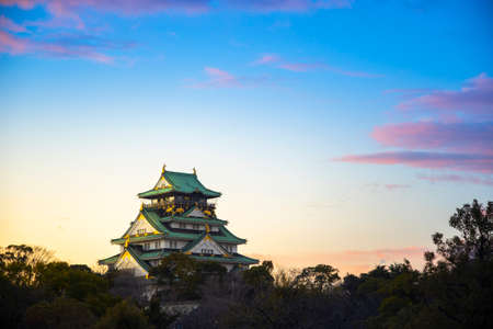 Beautiful Sunset of Osaka Castle in Osaka, Japan