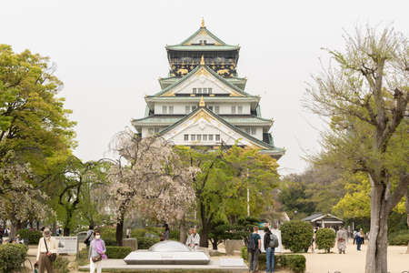 OSAKA, JAPAN - April 16th : Osaka castle with tourists, one of the famous castle at Osaka, Japan on April 16th, 2014.