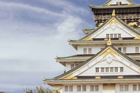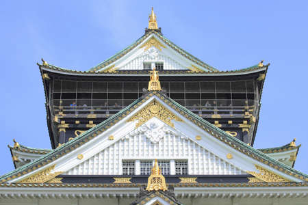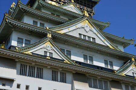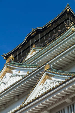 Architectural detail with Osaka Castle, in Japan. Traditional japanese architecture