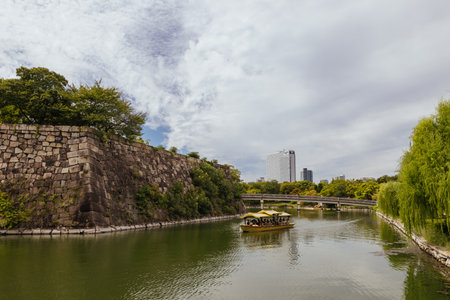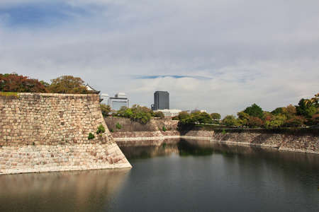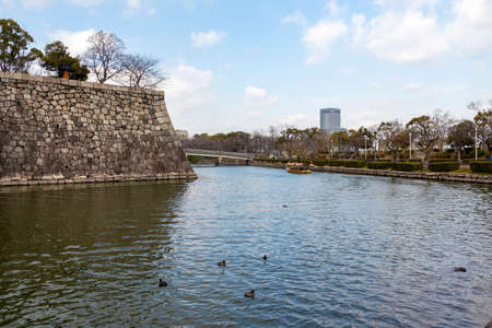 Fortification and ditch water around Osaka Castle for protection in Osaka Japan