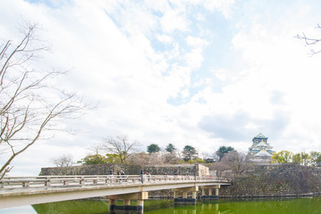 Osaka, Japan - December 15, 2019 : Beautiful scene in the park of Osaka Castle in Osaka City, Japan.