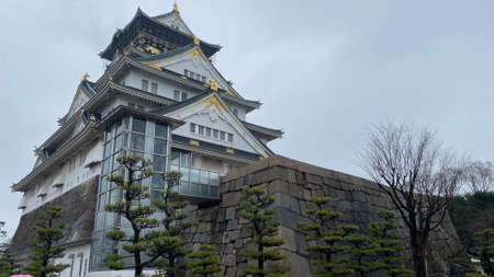 Osaka, Japan - December 30, 2019: Angled view of Osaka Castle