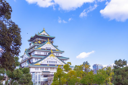 Osaka Castle, Osaka city, Japan, summer landscape vibrant view with a blue sky, Osakajo castle building, Kansai region, Osaka prefecture, travel to Japan