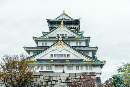 Osaka castle in autumn season, This building is a famous landmark in Osaka, Japan