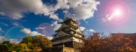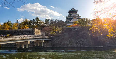 Osaka Castle with morning sunrise in autumn season, Osaka, Japan
