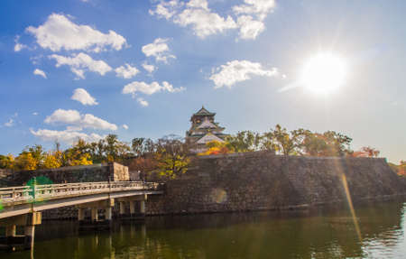 Landscape view of Osaka Castle main keep during autumn season at Osaka ,Japan