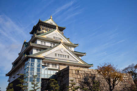 Osaka Castle in Osaka with autumn leaves, Japan, landmark of Unesco.