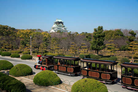 OSAKA, JAPAN - February 23, 2014: Osaka Castle under the bright blue sky from tilt-shift lens.