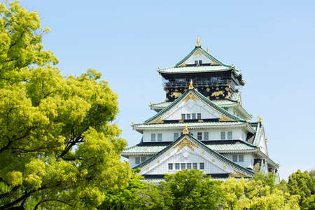 Osaka Castle, Osaka city, Japan, summer landscape vibrant view with a blue sky, Osakajo castle building, Kansai region, Osaka prefecture, travel to Japan