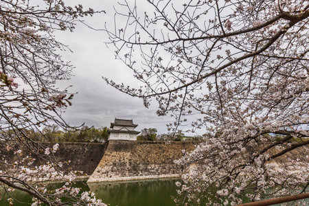 Osaka, Japan - Apr 7, 2014. View of Osaka Castle (Osakajo) in spring time. The castle is one of Japan most famous landmarks.