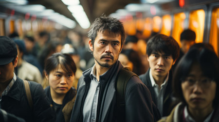 a group of people on a subway train