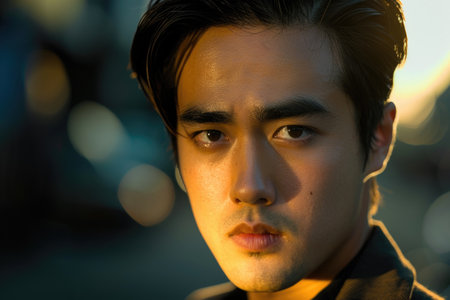 Thoughtful expression of a thai individual at sunset
