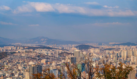 Seoul, Korea - October 6, 2020 : park green forest and Seoul cityscape