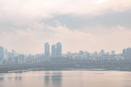 The beautiful view to Seoul city and Han-gang river from the air, South Korea