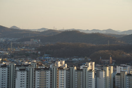 Cheongju City apartment and sunset landscape